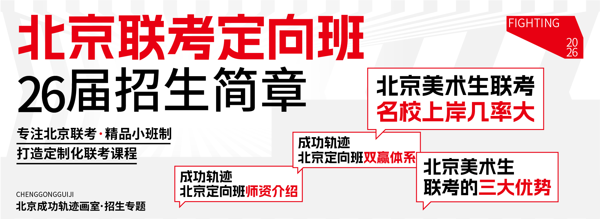 以“愛”貫穿始終成功軌跡藝術教育成立于2005年是國內有名的美術藝考培訓機構,專注美術教育培訓、藝術高考培訓,對于清華設計、央美設計、建筑以及各專業方向有完善的教學體系。教學涵蓋美術高考藝考培訓班(藝考繪畫培訓班),校考美術培訓,聯考美術培訓,附中考學,美術考研培訓等升學考試培訓以及少兒美術培訓。成人美術培訓等興趣美術培訓班,成功軌跡美術培訓機構秉承"以學員滿意度及教學質量為本"的教育宗旨,從最初十幾人的畫室發展到現在幾百人的規模,始終以“人人都能上名 ... [查看詳細]